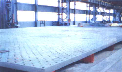 造船用火工平板材質(zhì):強度鑄鐵HT200-300或QT,工作面硬度為HB170-240,經(jīng)過兩次人工處(人工退火600度-700度和自然時效2-3年)使用該火工平臺精度穩(wěn)定,耐磨性能好。